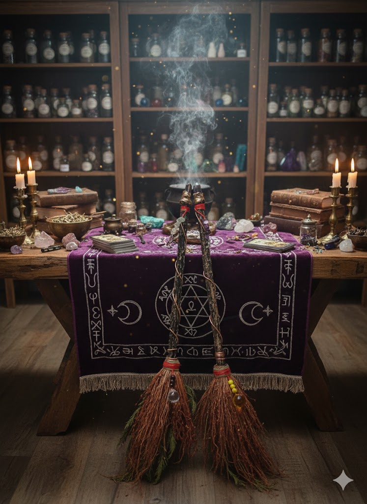 Potente herramienta mágica para limpiar y proteger tus espacios, barren la energía negativa y es un símbolo de protección y para invocar energía vital en hechizos, rituales y ceremonias.