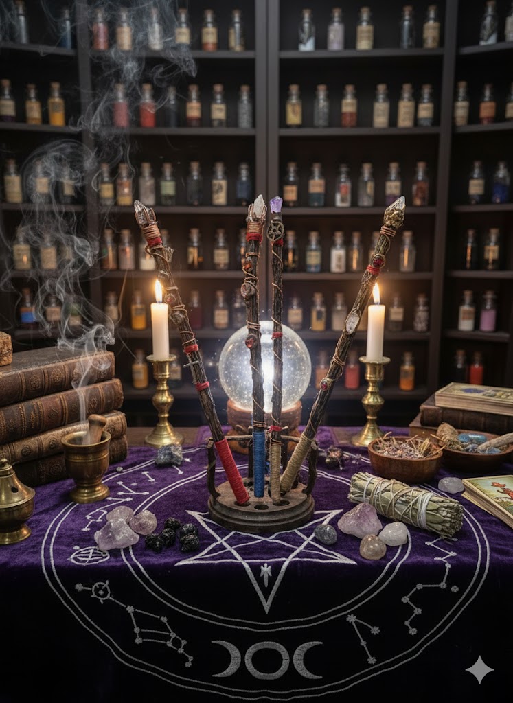 En Wicca, la varita puede representar el elemento aire o fuego, pero los fabricantes contemporáneos también crean varitas para los elementos tierra y agua