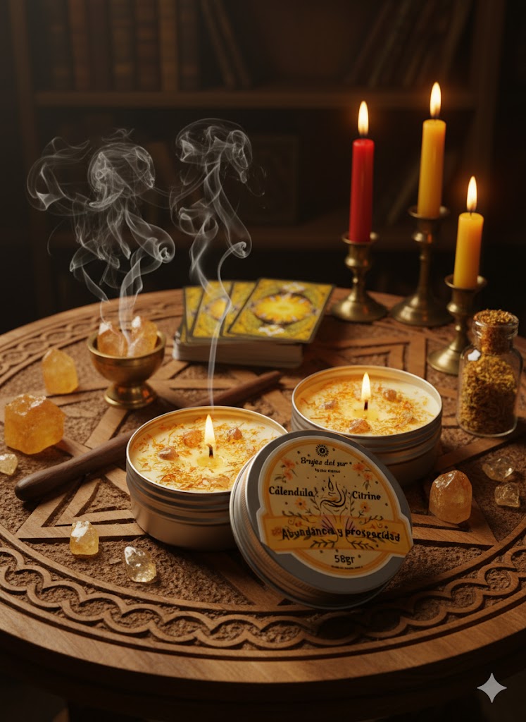 El dulce aroma a frutos rojos se une a la energía dorada del citrino y las flores de caléndula para atraer fortuna y oportunidades. Fundida en cera de soja, esta vela en lata irradia vibraciones de éxito, alegría y expansión. Al encenderla, se activa el flujo de la prosperidad y se abre el camino hacia la abundancia material y espiritual.