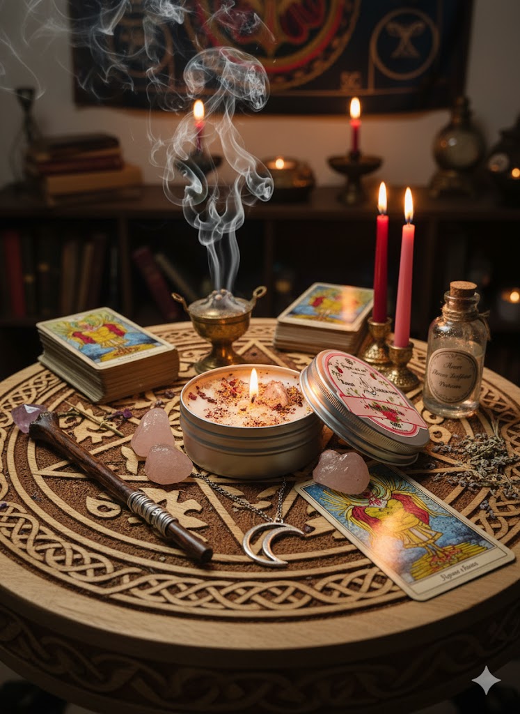 Creada con cera de soja y esencia pura de rosas, esta vela en lata despierta la energía del amor en todas sus formas. Los pétalos de rosa y el cuarzo rosa, piedra del corazón, irradian ternura, armonía y conexión emocional. Al encenderla, se invoca la vibración del amor infinito, sanando el alma y atrayendo vínculos sinceros y luminosos.